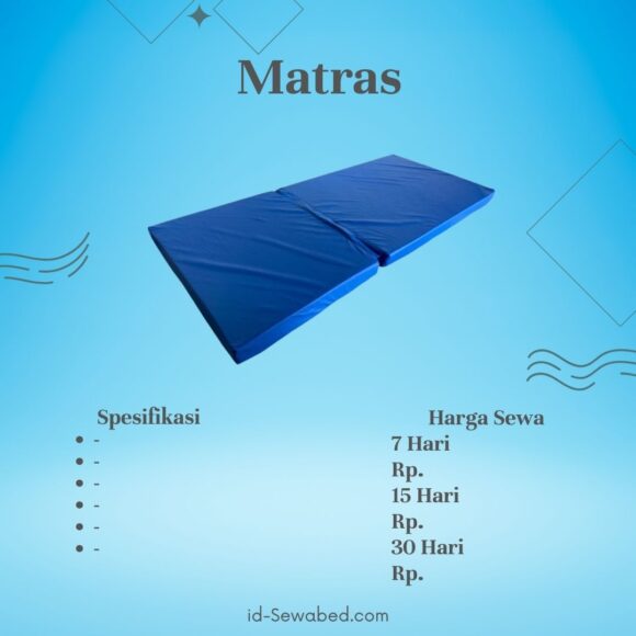 Matras Bed Pasien adalah alas tidur khusus untuk ranjang pasien yang dirancang agar nyaman, empuk, dan mudah dibersihkan. Biasanya terbuat dari busa padat dengan lapisan cover anti air sehingga higienis dan tahan lama. Matras ini membantu pasien beristirahat dengan lebih nyaman, serta mendukung perawatan di rumah maupun di fasilitas kesehatan.